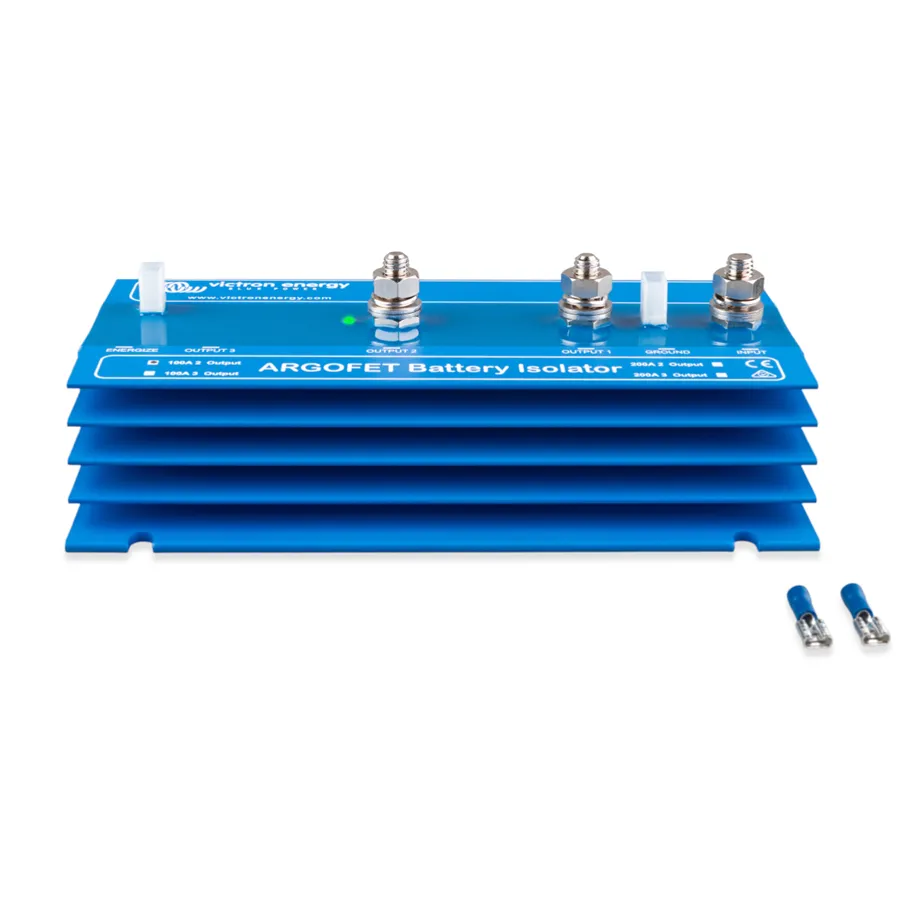Argofet 100-2 je bateriový oddělovač určený pro současné nabíjení dvou baterií z jednoho alternátoru nebo z jednoho výstupu nabíječky, aniž by docházelo k jejich vzájemnému propojení. Vybití servisní baterie tak neovlivní startovací baterii.
