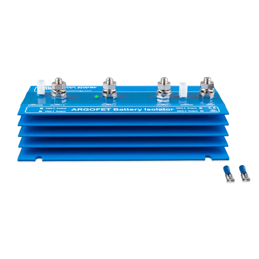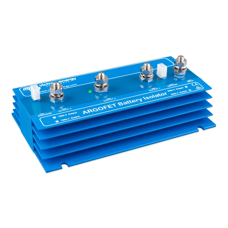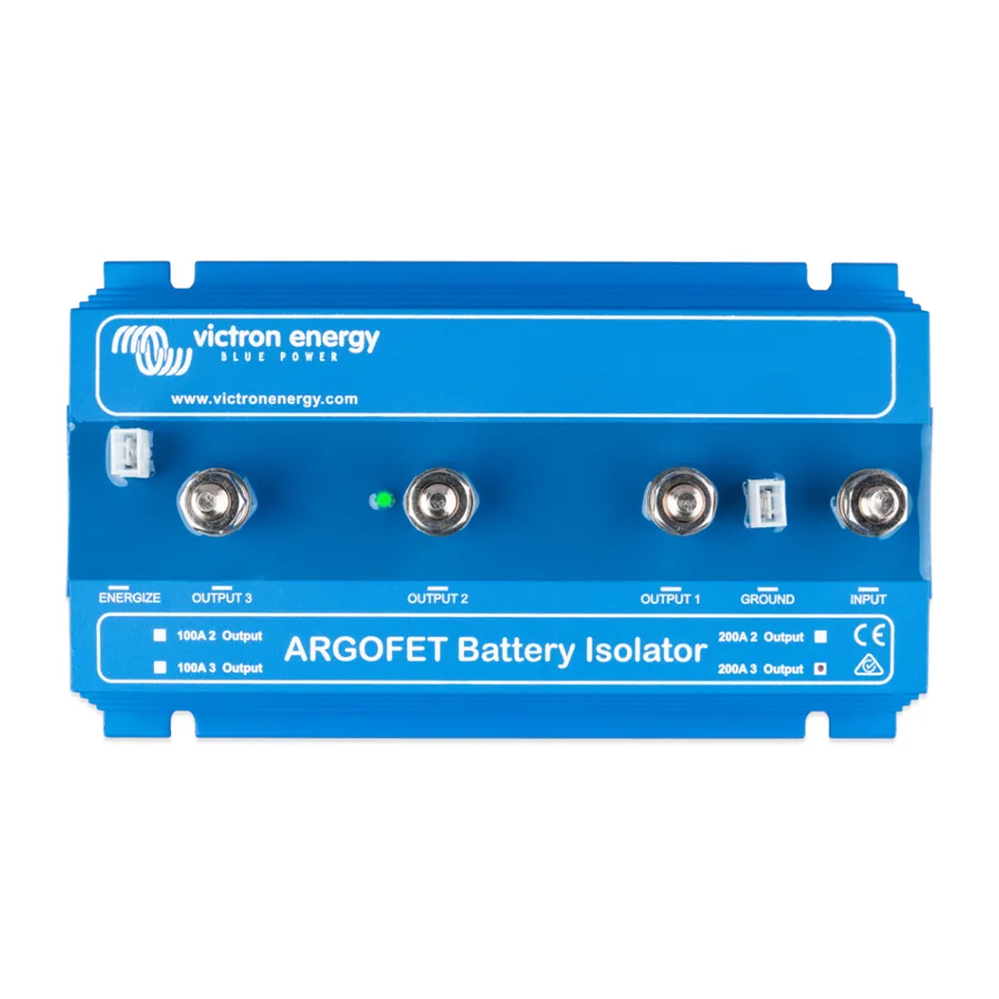 Argofet 200-3 je bateriový oddělovač určený pro současné nabíjení tří baterií z jednoho alternátoru nebo z jednoho výstupu nabíječky, aniž by byly baterie mezi sebou propojeny. Vybití servisní baterie tak neovlivní startovací baterii ani další připojené baterie v systému.